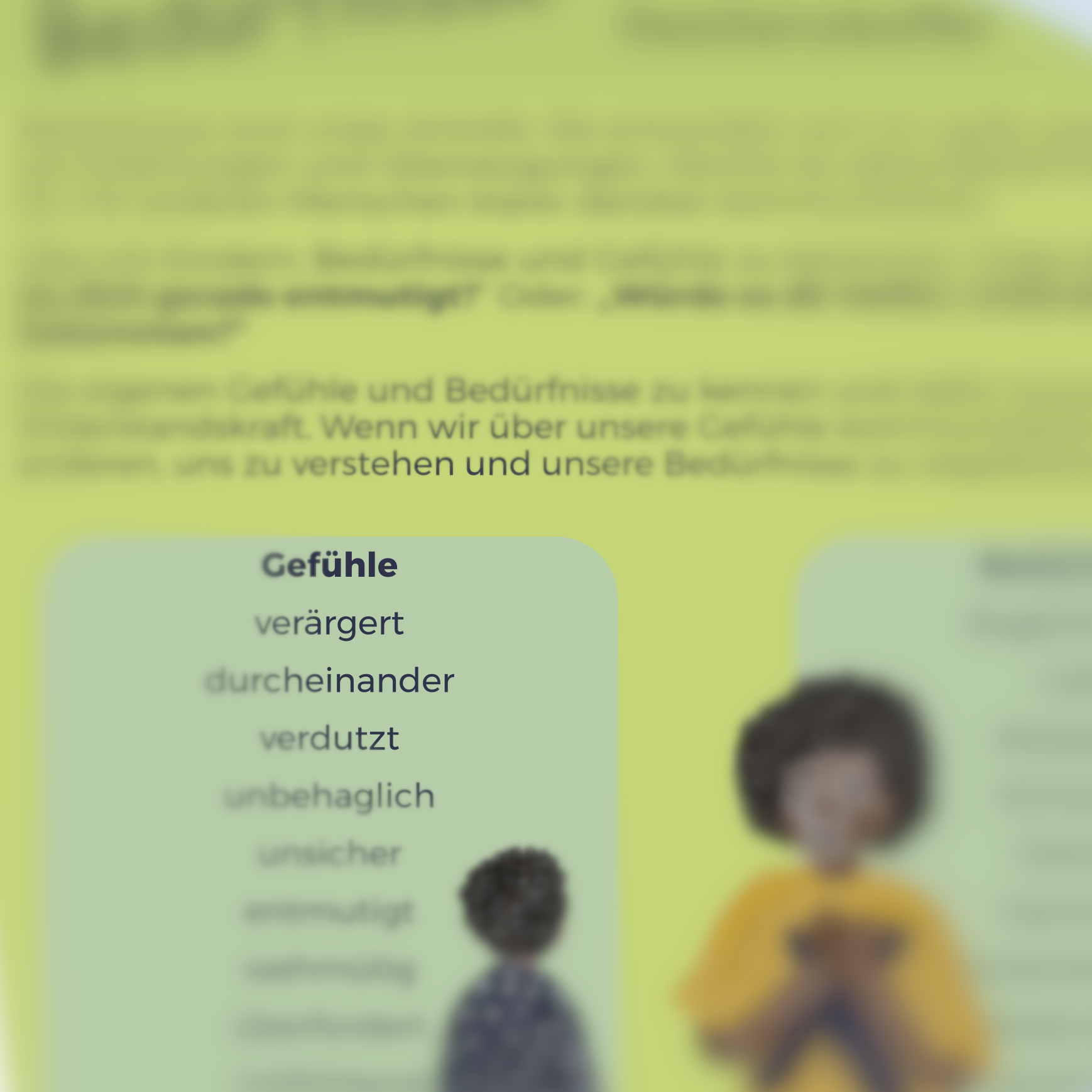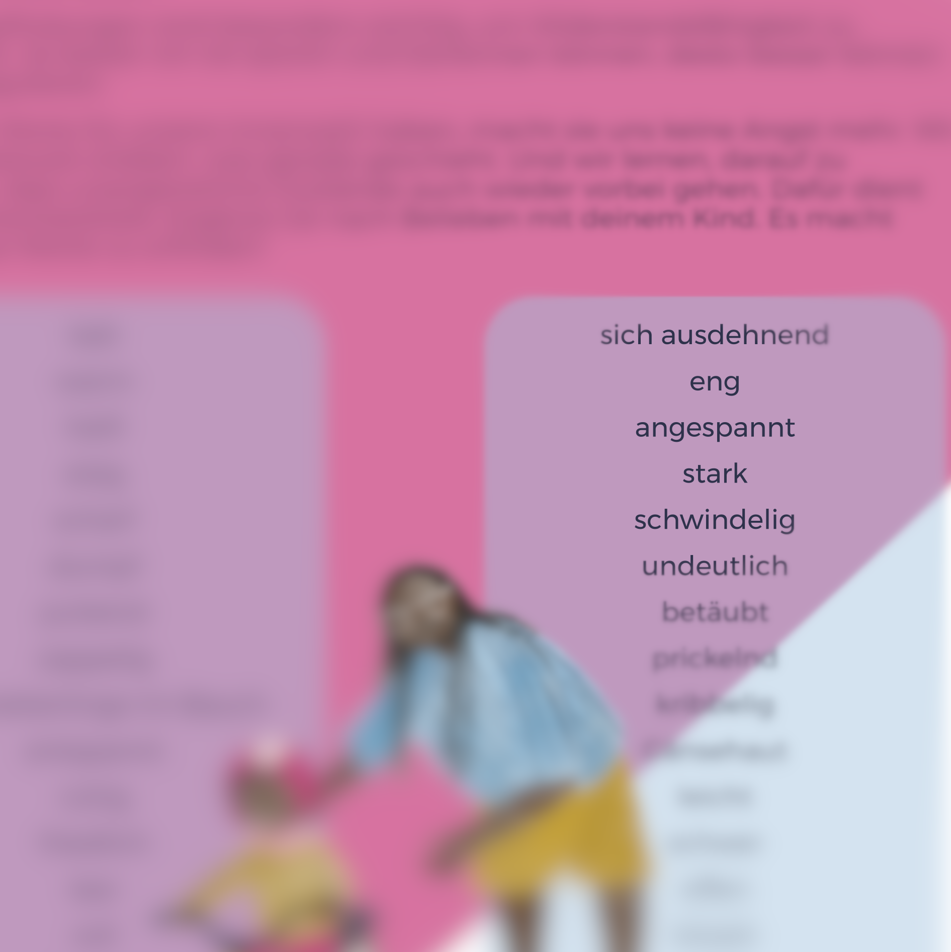 Möchtest du Kinder aktiv darin stärken, ihre Emotionen zu regulieren und ihnen damit Widerstandskraft mitgeben? Willst du eigene Erfahrungen umschreiben und schmerzhafte Erinnerungen heilen? Dann lass dich auf diese Übungen ein. Mithilfe der Worschatzlisten kannst du mit Kindern Gespräche über Gefühle und Emotionen und Empfindungen führen. Die Listen könnt ihr gemeinsam um eigene Worte erweitern. Das macht Spaß und verbindet!